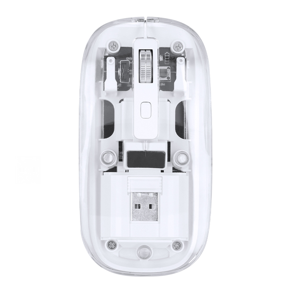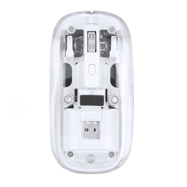 Draadloze optische muis in een origineel ontwerp, met een transparant die de interne componenten van het apparaat laat zien. Ingebouwde 300 mAh batterij en Type C oplaadpoort (kabel meegeleverd). Inclusief DPI-knop, met plug-and-play USB-aansluiting, en wordt geleverd in een individuele doos met kraftontwerp.