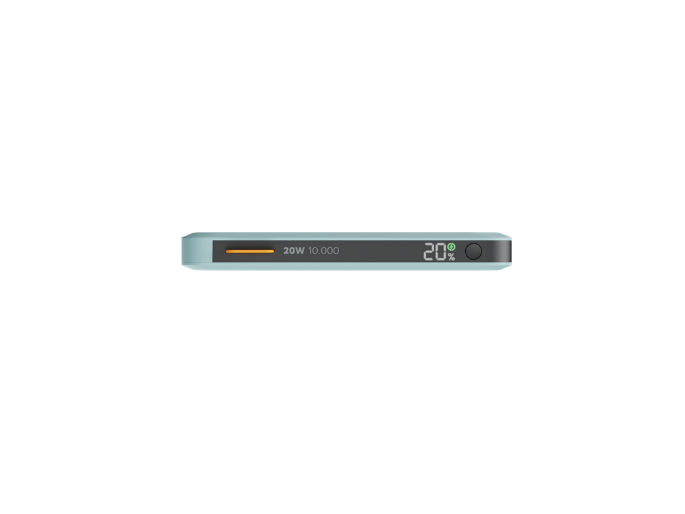 Deze 10.000mAh Powerbank heeft twee USB-C poorten en één USB-A poort. De 20W USB-C PD-uitgang is perfect voor het snel opladen van allerlei mobiele apparaten. De behuizing van de Powerbank is grotendeels gemaakt van gerecycled plastic, ter ondersteuning van een duurzame toekomst.