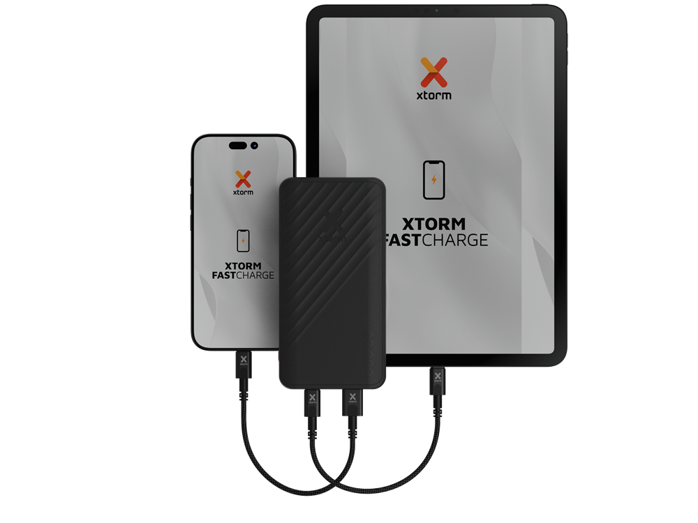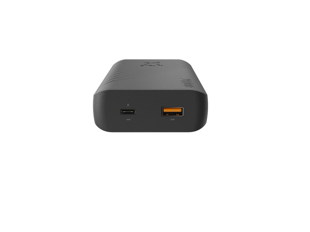 Charcoal Black: Deze kleur staat voor mysterie en elegantie. Het geeft je een gevoel van autoriteit en waardigheid. Het is een stijlvolle kleur die je gemakkelijk combineert met andere kleuren. FastCharge minimaal 4 keer!Met deze Xtorm Go2 Powerbank en de enorme capaciteit van 20.000mAh is je oplaadstress meteen verdwenen. De 15W FastCharge zorgt ervoor dat jouw apparaten binnen no-time weer volledig opgeladen zijn, en dat wel 4x met één lading! Gebruik de USB-A en USB-C aansluiting om twee apparaten snel op te laden, op hetzelfde moment. De pass-through functie zorgt ervoor dat je een apparaat nieuwe energie kunt geven terwijl de Powerbank zelf opgeladen wordt!Geen stopcontact? Geen probleem!Door de nieuwste technologieën te gebruiken, past de grote capaciteit van 20.000mAh in deze compacte Go2 Powerbank. Hij past probleemloos in je tas of rugzak. Tijdens een vliegreis neemt deze Powerbank amper ruimte in en past gemakkelijk in je handbagage. Het perfecte accessoire voor een dag aan het strand, stedentrip of lange wandeling in de natuur. Wanneer er voor langere tijd geen stopcontact in de buurt is en je wel volop gebruik wilt maken van je mobiele apparaten, is dit jouw Go2 Powerbank!Go2 kan alles aan!Met de juiste kabels is deze Powerbank geschikt voor elk type smartphone, earbuds of ander klein mobiel apparaat. Dankzij de USB-A en USB-C aansluiting kun je twee apparaten tegelijkertijd van nieuwe energie voorzien. Of je nu een ouder of nieuwer model Xiaomi, Huawei, Samsung of iPhone hebt, deze Go2 heeft voldoende vermogen om je telefoon minstens 4x volledig op te laden van 0 naar 100%! De LED lampjes laten je zien hoeveel extra energie de Powerbank nog te geven heeft. Je weet dus wanneer het tijd is om de Go2 weer op te laden. Levensverlengend door FastChargeDoor de 15W FastCharge zijn niet alleen jouw apparaten supersnel opgeladen. Deze functie verlengt ook de levensduur van de batterij van je telefoon. Snel-laden voorkomt oververhitting van de batterij, wat levensverlengend werkt. Daarnaast is het het beste om een apparaat met een interne batterij steeds zo snel en kort mogelijk op te laden.  Jouw Go2 voor vandaag én morgenDeze Go2 Powerbank met 15W FastCharge en een capaciteit van 20.000mAh heeft een uitstekende prijs-kwaliteit verhouding. Deze Powerbank is geschikt voor de huidige mobiele apparaten en ook voor de modellen van de toekomst. Dit komt vooral door het gebruik van de nieuwste technologieën. Goedkopere powerbanks verliezen na verloop van tijd power of laden niet meer zo snel op. Met de kwalitatief uitstekende Xtorm Go2 Powerbank krijg je gegarandeerd jarenlang #MoreEnergy!Duurzaam gemaaktDe behuizing van deze Go2 Powerbank is 100% gemaakt van gerecycled plastic en voorzien van het wereldwijd erkende GRS-certificaat! Daarnaast is de verpakking bijna volledig gemaakt van gerecycled papier met het FSC-keurmerk. Ook de kleine, 3 gram wegende, haak is gemaakt van volledig gerecycled plastic en voorzien van het GRS-certificaat. Geniet jarenlang van deze betrouwbare en duurzaam gemaakte Go2 Powerbank!Xtorm Supreme Guarantee