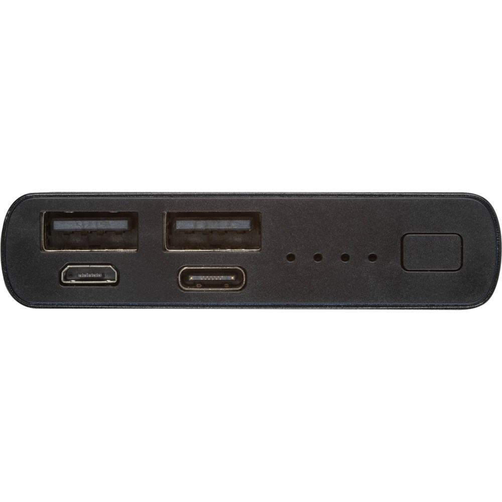 Powerbank van gerecycled aluminium met een capaciteit van 10.000 mAh. LCD display en een laadkabel. De powerbank heeft 2 USB aansluitingen en heeft een type C ingang. Uw logo wordt op de behuizing gegraveerd.