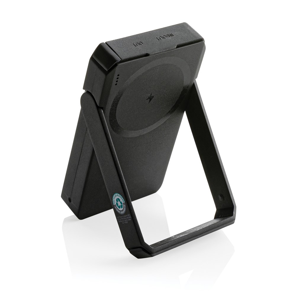 5.000 mAh zonne-energie powerbank gemaakt van RCS-gecertificeerd gerecycled ABS. Het totale gerecyclede materiaalgehalte bedraagt 21% op basis van het totale gewicht van het artikel. De RCS-certificering garandeert een volledig gecertificeerde toeleveringsketen van gerecyclede materialen. De powerbank maakt gebruik van hoogwaardige monokristallijne zonnepanelen met een conversierendement van 19%. Laadsnelheid is afhankelijk van de omstandigheden. Met geïntegreerde standaardfunctie om de zonnepanelen onder een optimale hoek te gebruiken. De powerbank bevat een duurzame grade A lithiumbatterij van 5.000 mAh. Met 10W draadloze magnetische oplader om je telefoon zonder draden op te laden. Laadsnelheid zonne-energie: 5V/130mA. Type C-output: 5V/2A. Output: USB A: 5V/2A Type C: 5V/2A. Het artikel en de accessoires zijn vrij van PVC. Inclusief RCS-gecertificeerde oplaadkabel van gerecycled TPE. Verpakt in FSC® mix-verpakking. Geregistreerd ontwerp®.