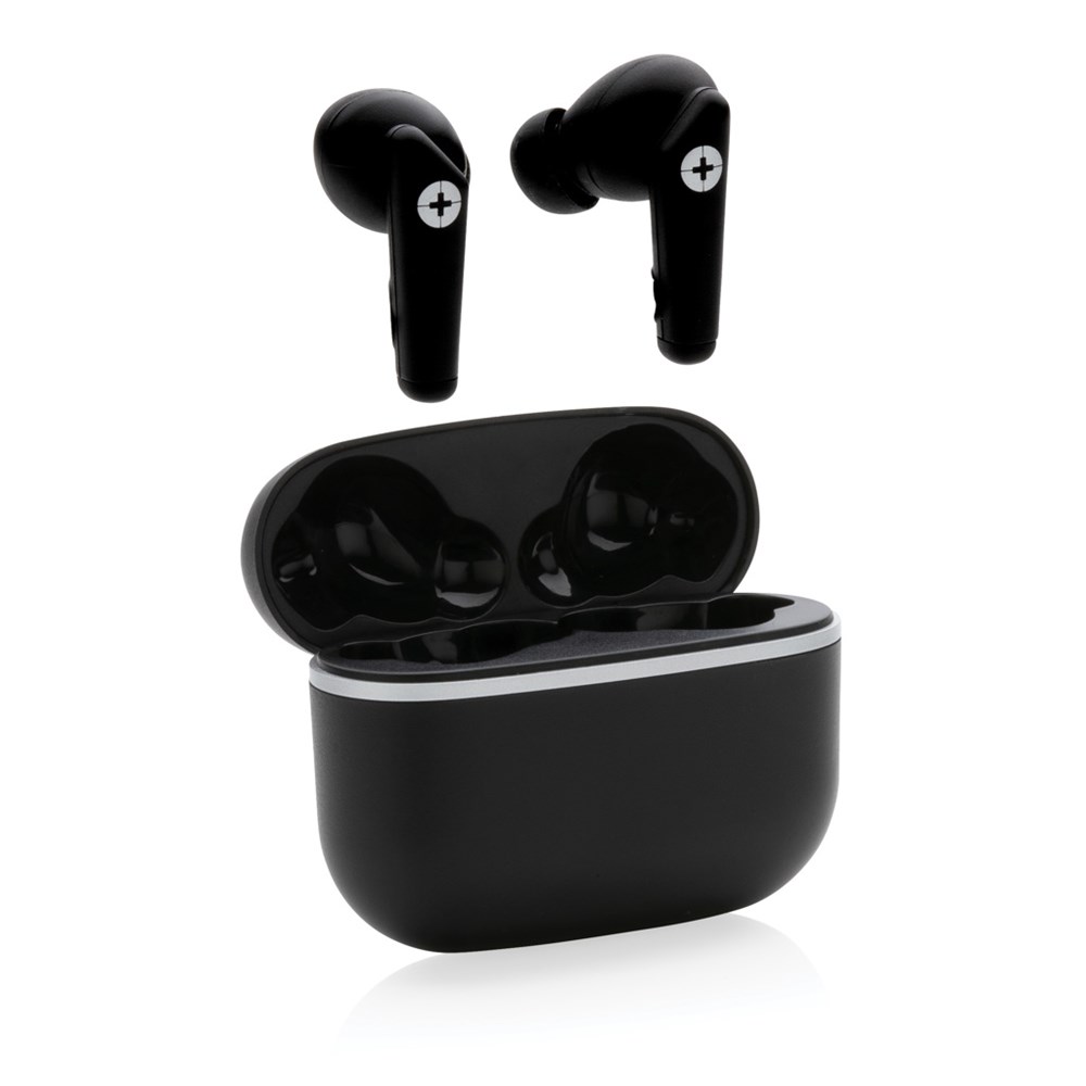Draadloze oordopjes met mooi zuiver geluid . De oordopjes en het oplaadcase zijn gemaakt van RCS (Recycled Claim Standard) gecertificeerd gerecycled ABS. Totaal gerecycled materiaal: 59% op basis van het totale gewicht van het item. RCS-certificering zorgt voor een volledig gecertificeerde toeleveringsketen van de gerecyclede materialen. De oordopjes worden geleverd in een compacte 400 mAh oplaadcassette waarmee u uw oordopjes kunt opladen en overal mee naartoe kunt nemen. De oordopjes gebruiken BT 5.3 voor automatisch koppelen zonder gedoe en met een stabiele verbinding. De oordopjes hebben een 40 mAh-batterij die een speelduur van maximaal 4 uur mogelijk maakt en in de oplaadcassette in 1,5 uur weer kan worden opgeladen. Het draadloze afstandsbereik is maximaal 10 meter. Inclusief type C laadkabel gemaakt van GRS gecertificeerd gerecycled TPE. Verpakt in FSC® mix geschenkdoos. Artikel en accessoires 100% PVC-vrij
