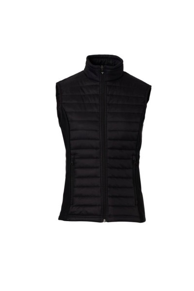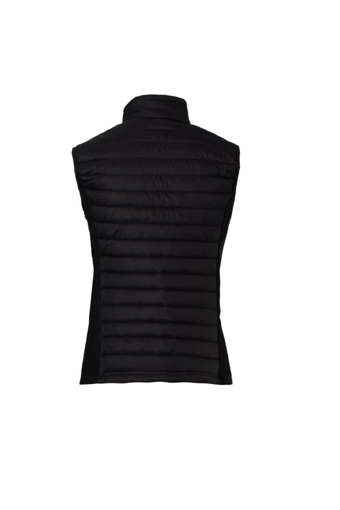 Gewatteerde bodywarmer voor dames, zijkanten in soft-shell, plastic ritssluiting met metalen...meer