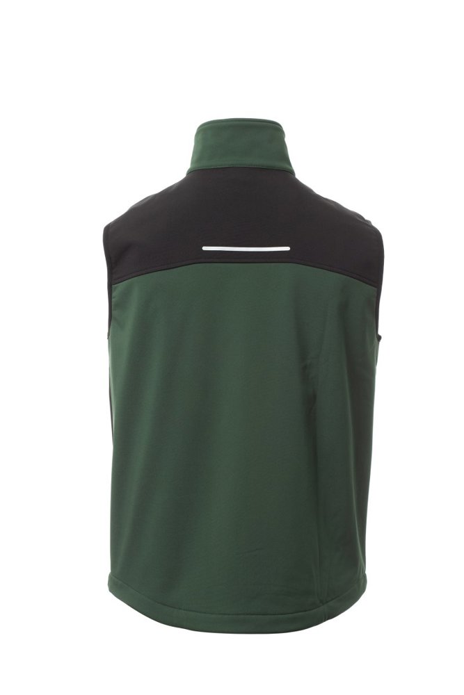 WP 8000 mm H2O, WVT 5000 g/m² 24h Soft-shell gilet voor heren, tweekleurig, ritssluiting met metalen 'semi-auto lock' treklipje en gepersonaliseerde runner. Twee zijzakken met rits, één borstzak met gecoate rits. Reflecterend detail op het rugpand. Verstelbare onderkant met gepersonaliseerde stoppers.