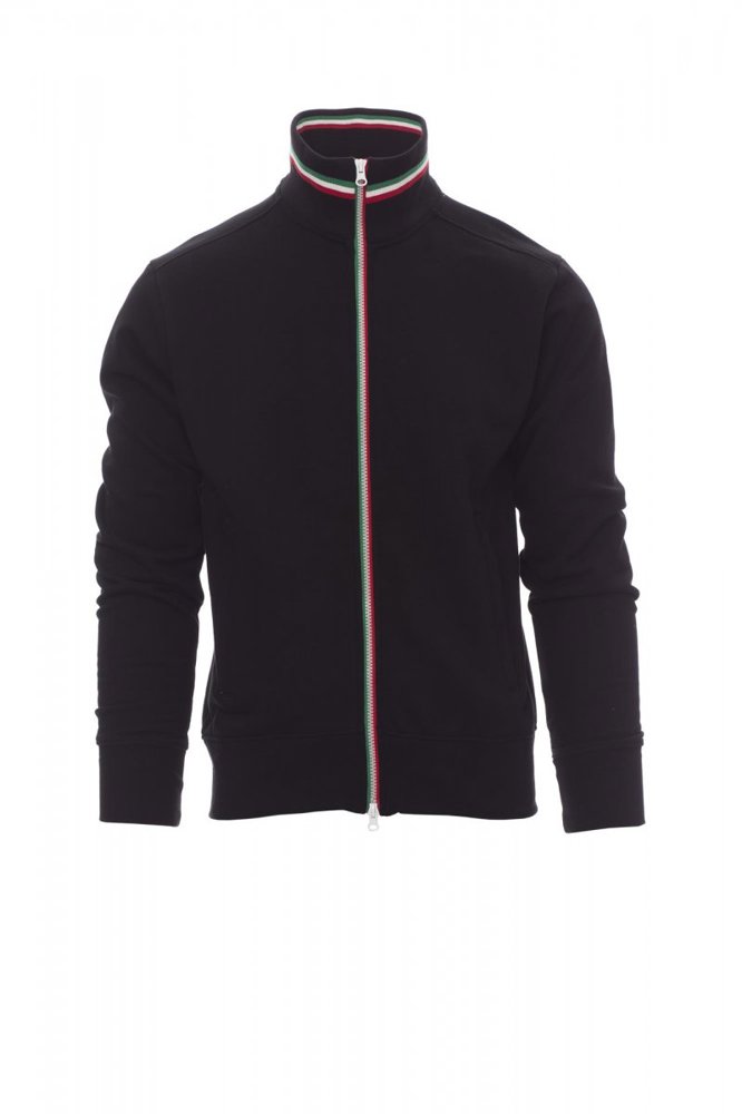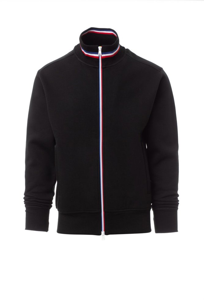Herensweatshirt met doorlopende kunststof SBS-rits in drie contrasterende kleuren met dubbele metalen runner, ribkraag met drie contrasterende kleuren, nauwsluitende mouwen, twee buitenzakken met ritssluiting, ribboorden met stretch aan de zoom en mouwen, versterkte naden.