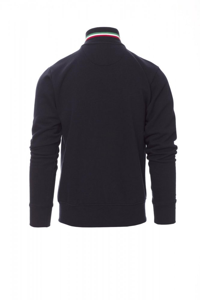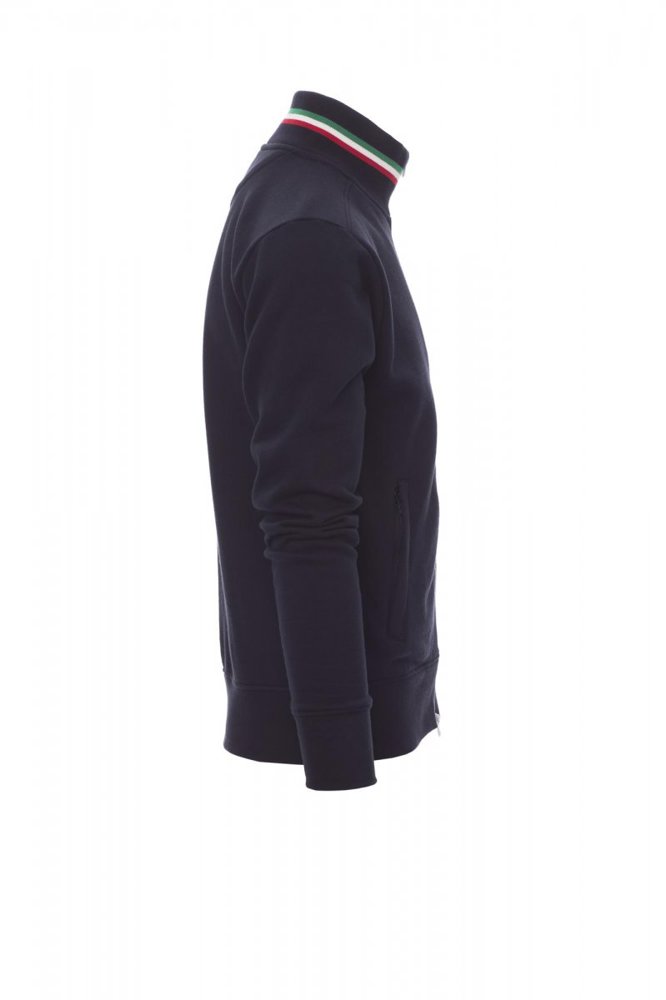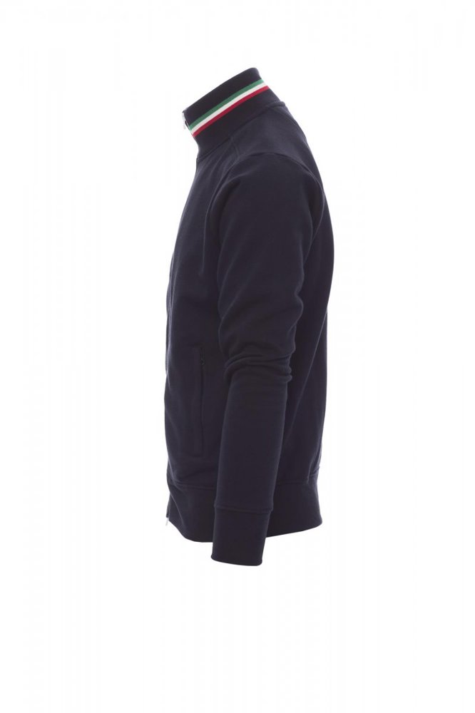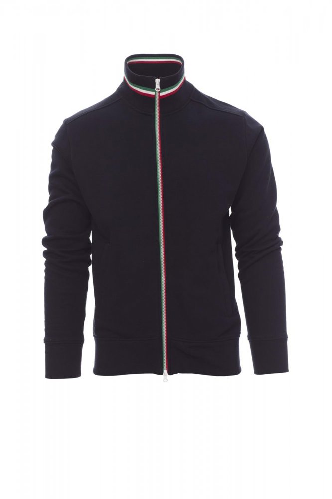 Herensweatshirt met doorlopende kunststof SBS-rits in drie contrasterende kleuren met dubbele metalen runner, ribkraag met drie contrasterende kleuren, nauwsluitende mouwen, twee buitenzakken met ritssluiting, ribboorden met stretch aan de zoom en mouwen, versterkte naden.