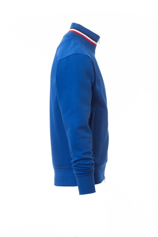 Herensweatshirt met doorlopende kunststof SBS-rits in drie contrasterende kleuren met dubbele metalen runner, ribkraag met drie contrasterende kleuren, nauwsluitende mouwen, twee buitenzakken met ritssluiting, ribboorden met stretch aan de zoom en mouwen, versterkte naden.