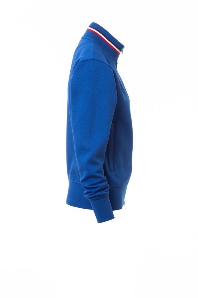 Nauwsluitend damessweatshirt met doorlopende kunststof SBS-rits in drie contrasterende kleuren met dubbele metalen runner, ribkraag met drie contrasterende kleuren, nauwsluitende mouwen, twee buitenzakken met ritssluiting, ribboorden met stretch aan de zoom en mouwen, versterkte naden.
