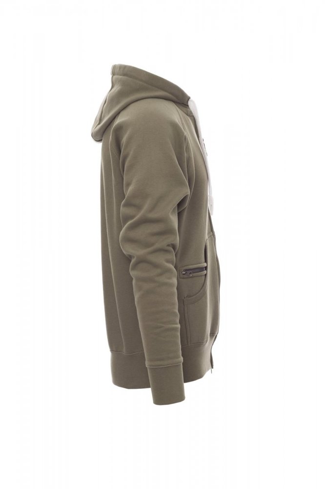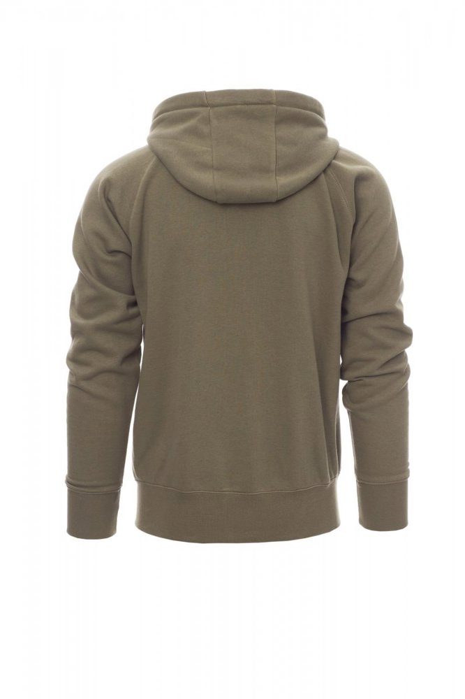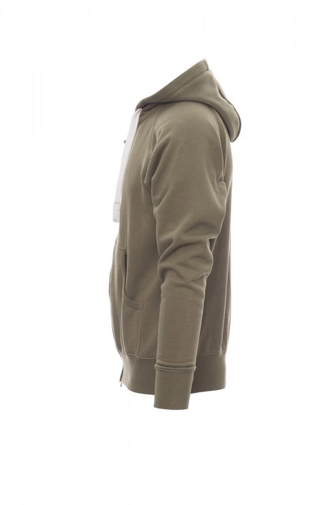 Herenhoodie met doorlopende geplastificeerde SBS-rits met dubbele metalen runner, capuchon met dubbel gestikte naden en wit trekkoord met contrasterend stiksel en metalen ringen, raglanmouwen, kangoeroezakken, kleine zak met rits, ribboorden met stretch aan de zoom en mouwen, versterkte naden.