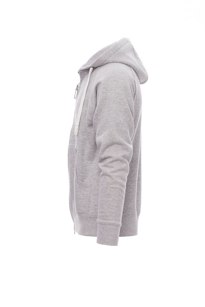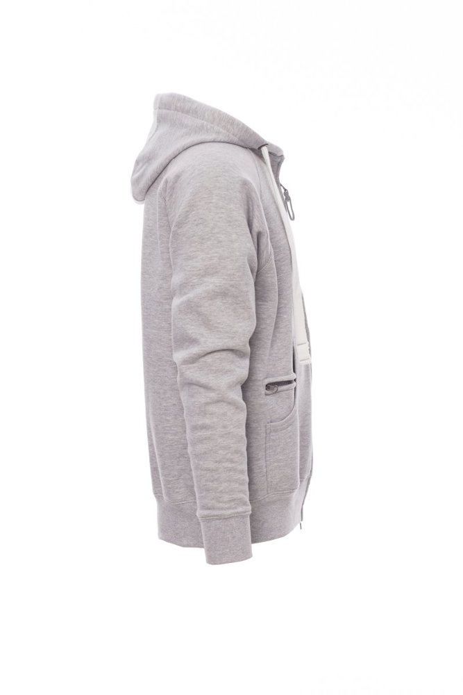 Herenhoodie met doorlopende geplastificeerde SBS-rits met dubbele metalen runner, capuchon met dubbel gestikte naden en wit trekkoord met contrasterend stiksel en metalen ringen, raglanmouwen, kangoeroezakken, kleine zak met rits, ribboorden met stretch aan de zoom en mouwen, versterkte naden.