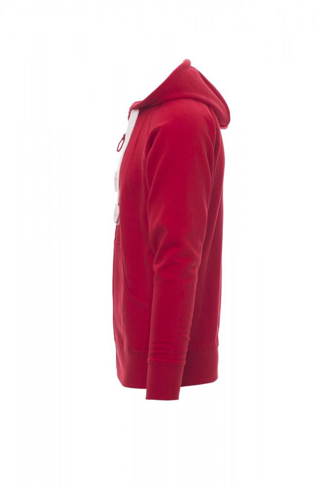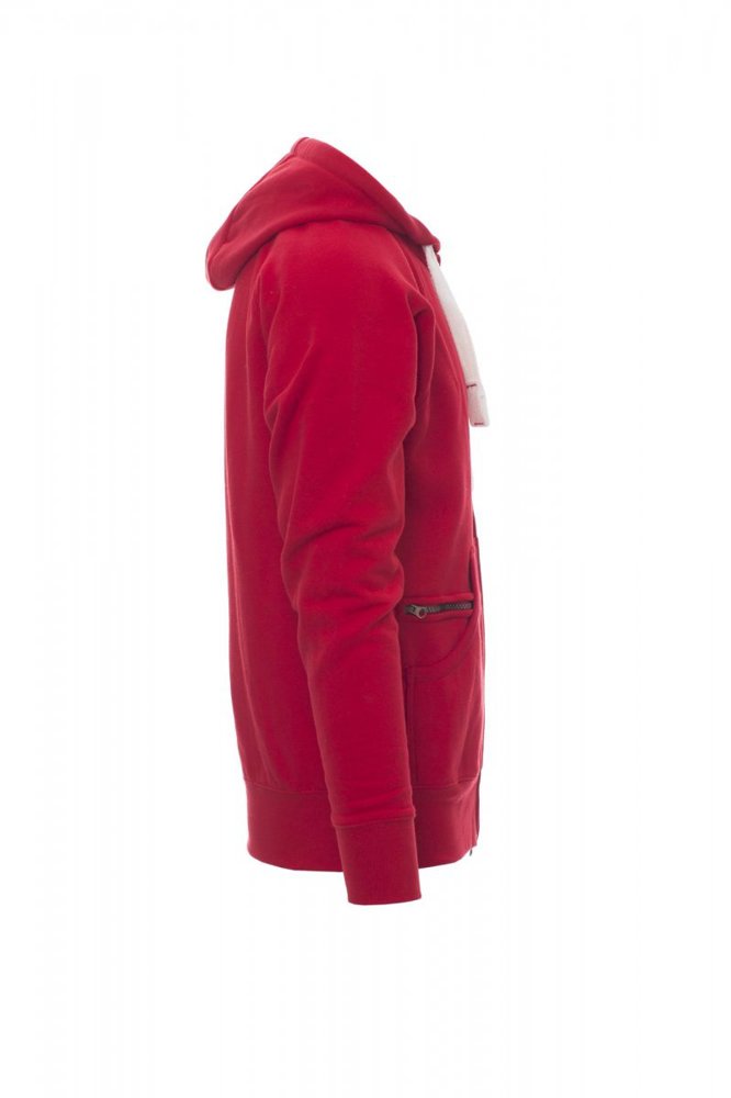 Herenhoodie met doorlopende geplastificeerde SBS-rits met dubbele metalen runner, capuchon met dubbel gestikte naden en wit trekkoord met contrasterend stiksel en metalen ringen, raglanmouwen, kangoeroezakken, kleine zak met rits, ribboorden met stretch aan de zoom en mouwen, versterkte naden.
