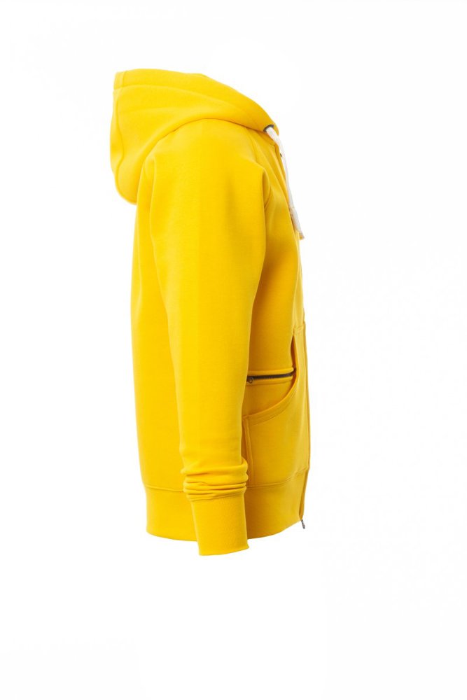 Herenhoodie met doorlopende geplastificeerde SBS-rits met dubbele metalen runner, capuchon met dubbel gestikte naden en wit trekkoord met contrasterend stiksel en metalen ringen, raglanmouwen, kangoeroezakken, kleine zak met rits, ribboorden met stretch aan de zoom en mouwen, versterkte naden.