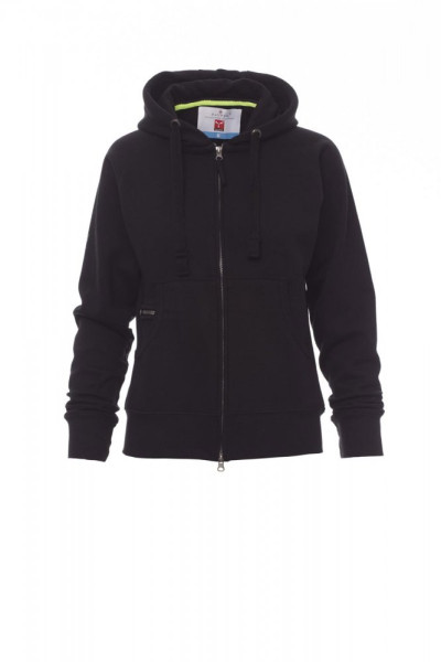 Nauwsluitende dameshoodie met doorlopende geplastificeerde SBS-rits met dubbele metalen runner,...meer