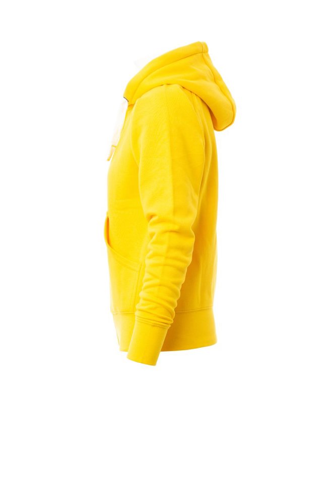 Nauwsluitende dameshoodie met doorlopende geplastificeerde SBS-rits met dubbele metalen runner, capuchon met dubbel gestikte naden en wit trekkoord met contrasterend stiksel en metalen ringen, raglanmouwen, kangoeroezakken, kleine zak met rits, ribboorden met stretch aan de zoom en mouwen, versterkte naden.