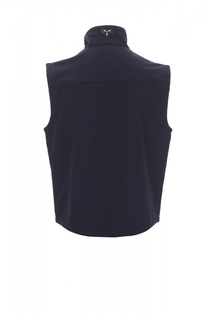 WP 8000 mm H2O, WVT 5000 g/m² 24h. Herenbodywarmer, comfort-fit, met lange verstevigde SBS-rits, twee zakken met rits opzij, borstzak met uitklapbare badgehouder, taille met trekkoord. Binnenzak en twee ritsen voor eenvoudiger bedrukken en borduren op de borst en schouders.