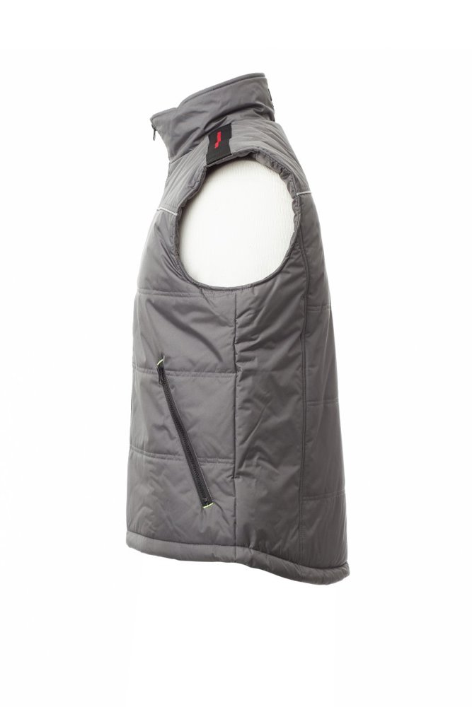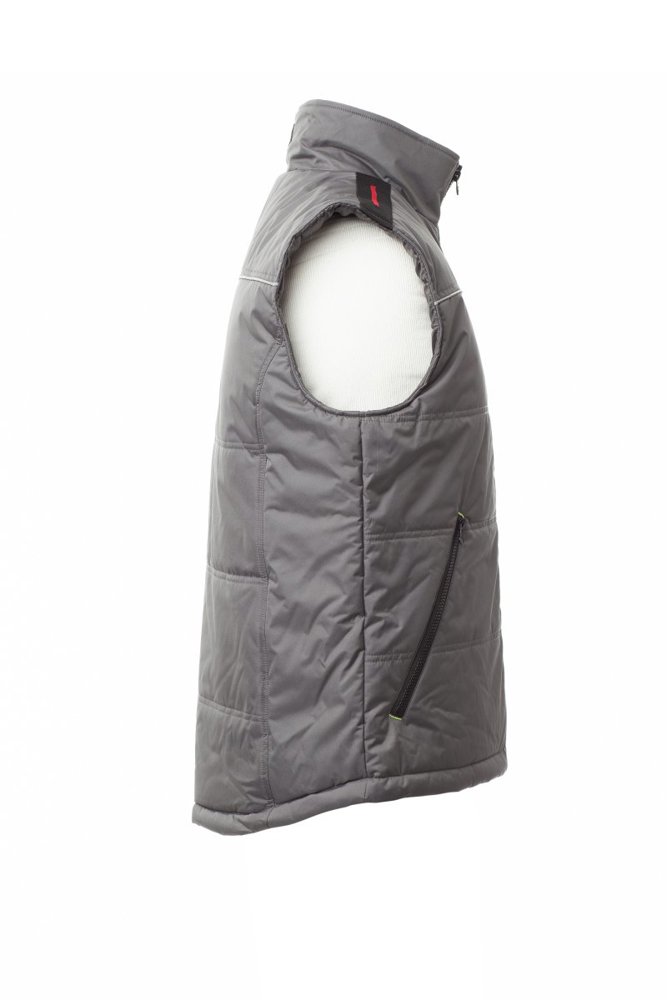 Unisex bodywarmer met kunststof rits van 5 mm met metalen runner, gevormde rug, twee ruime buitenzakken met rits, reflecterende pipingband op de borst en rug. Binnenzijde: doorgestikte gewatteerde voering, afgewerkt met voering met hoge dichtheid, binnenkraag van fleece, een binnenzak.
