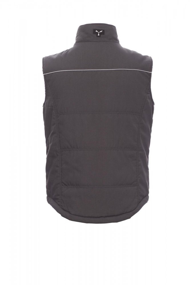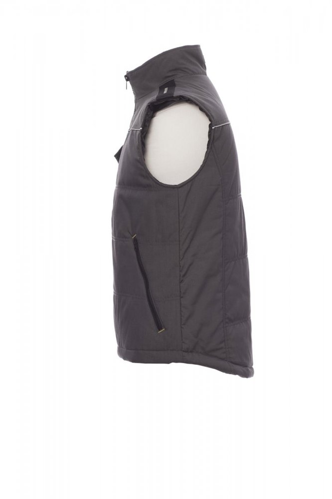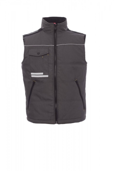 Unisex bodywarmer, kunststof rits van 8 mm met metalen runner, gevormde rug, twee ruime buitenzakken met rits, ruime multifunctionele borstzak voor smartphone, reflecterende banden, ring voor badgehouder. Binnenzijde: gewatteerde voering met hoge dichtheid, binnenkraag van fleece, een binnenzak.