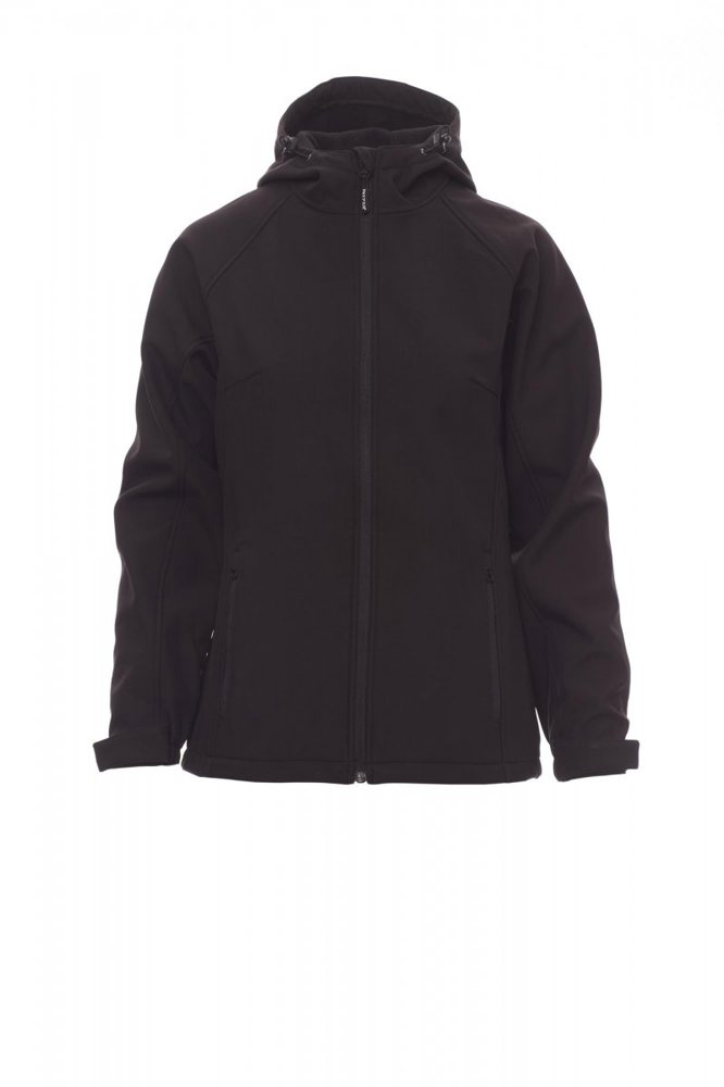 WP 8000 mm H2O, WVT 5000 g/m² 24h. Damesjas comfort-fit, raglanmouwen, gevormde capuchon met dubbel gestikte naden en trekkoord, lange verstevigde rits, elastische manchetten met klittenband, twee buitenzakken met rits.