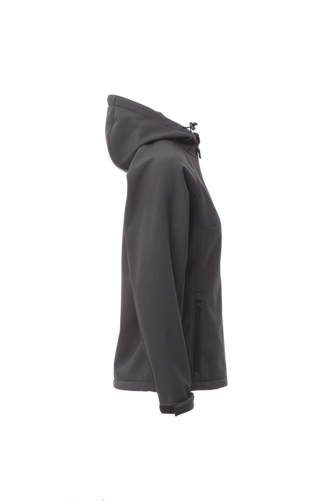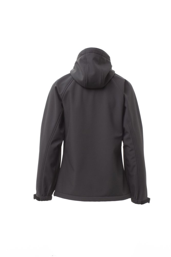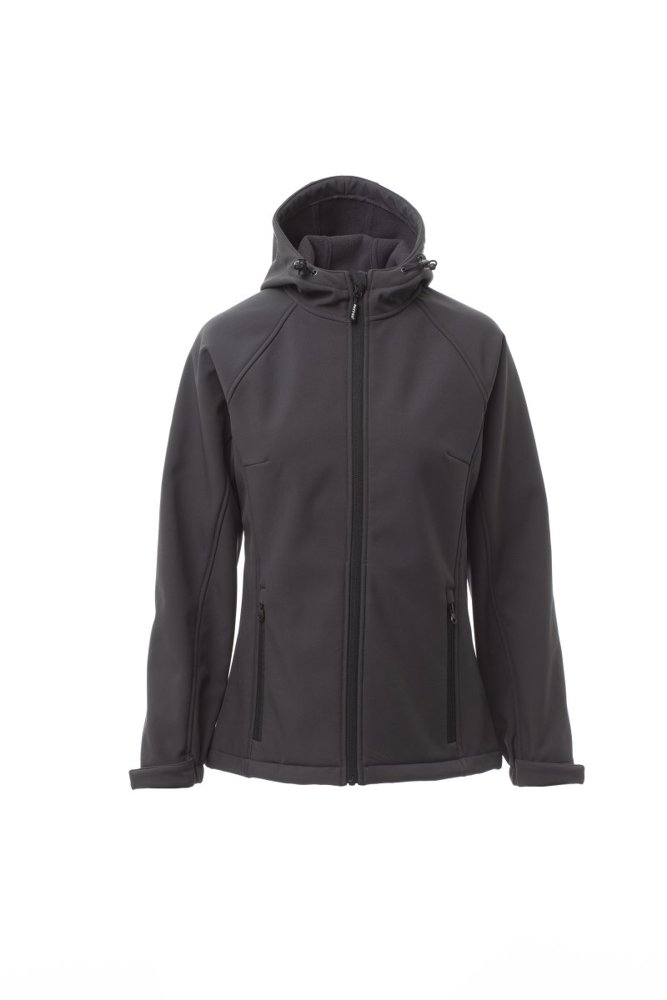 WP 8000 mm H2O, WVT 5000 g/m² 24h. Damesjas comfort-fit, raglanmouwen, gevormde capuchon met dubbel gestikte naden en trekkoord, lange verstevigde rits, elastische manchetten met klittenband, twee buitenzakken met rits.