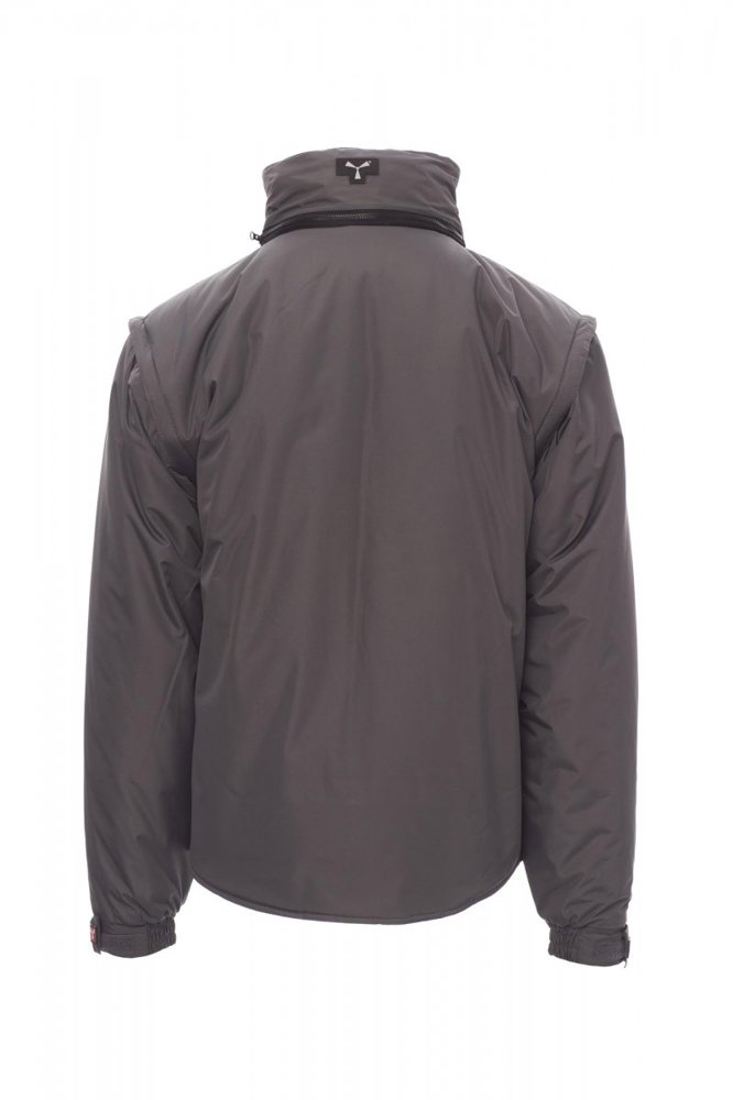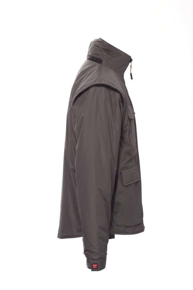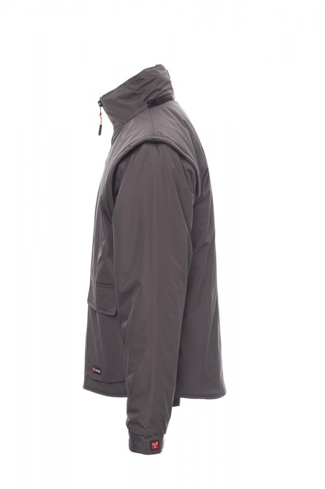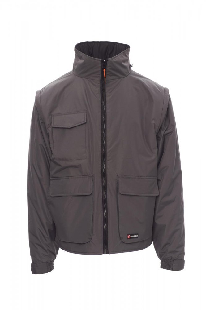 Herenjas, afneembare mouwen, kunststof rits van 8 mm met metalen runner, uitvouwbare capuchon, elastische manchetten, twee ruime voorzakken met LOCK SYSTEM, twee zijzakken, borstzak voor smartphone. Binnenzijde: gewatteerd, rits om bedrukken en borduren te vereenvoudigen.