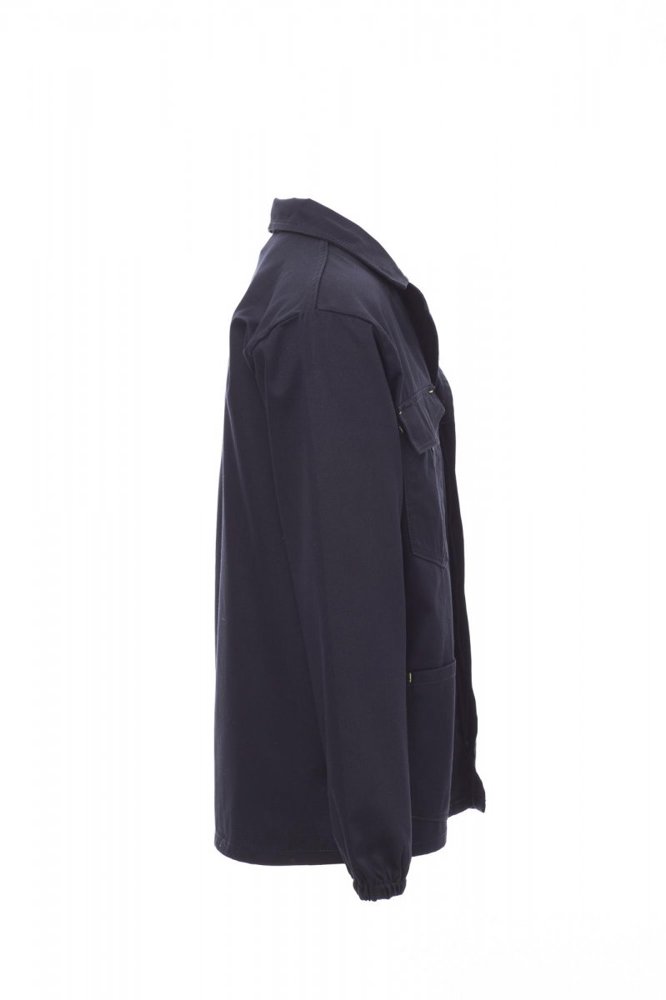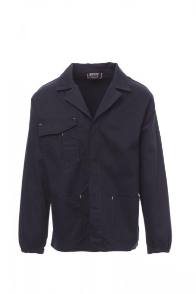 Jas met open hals, elastiek aan de polsen, afgedekte sluiting met knopen, twee opgestikte zakken en een borstzak met ruimte voor smartphone, badgehouder, sleuf voor pen en sluiting met overslag en klittenband.