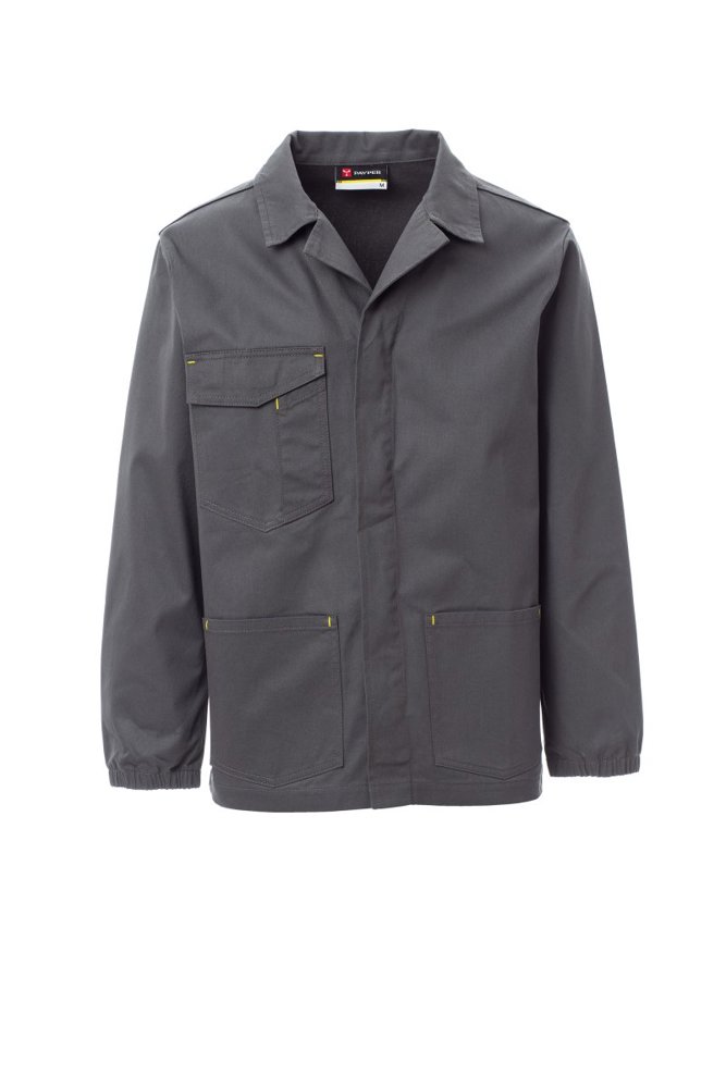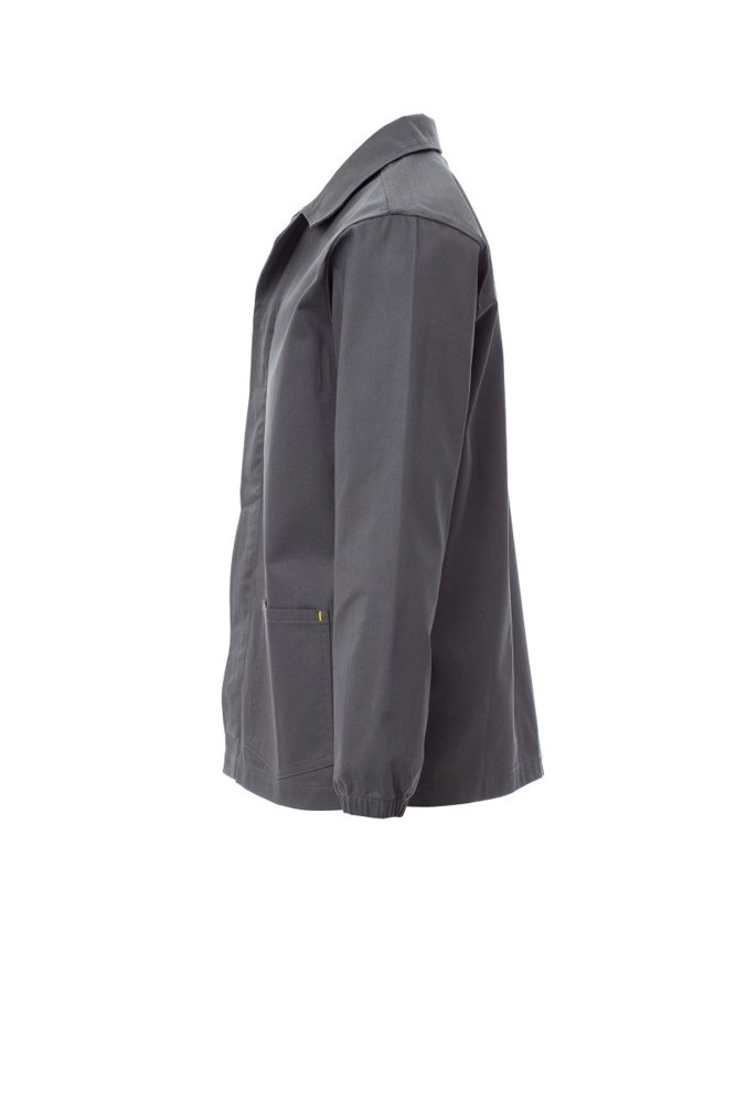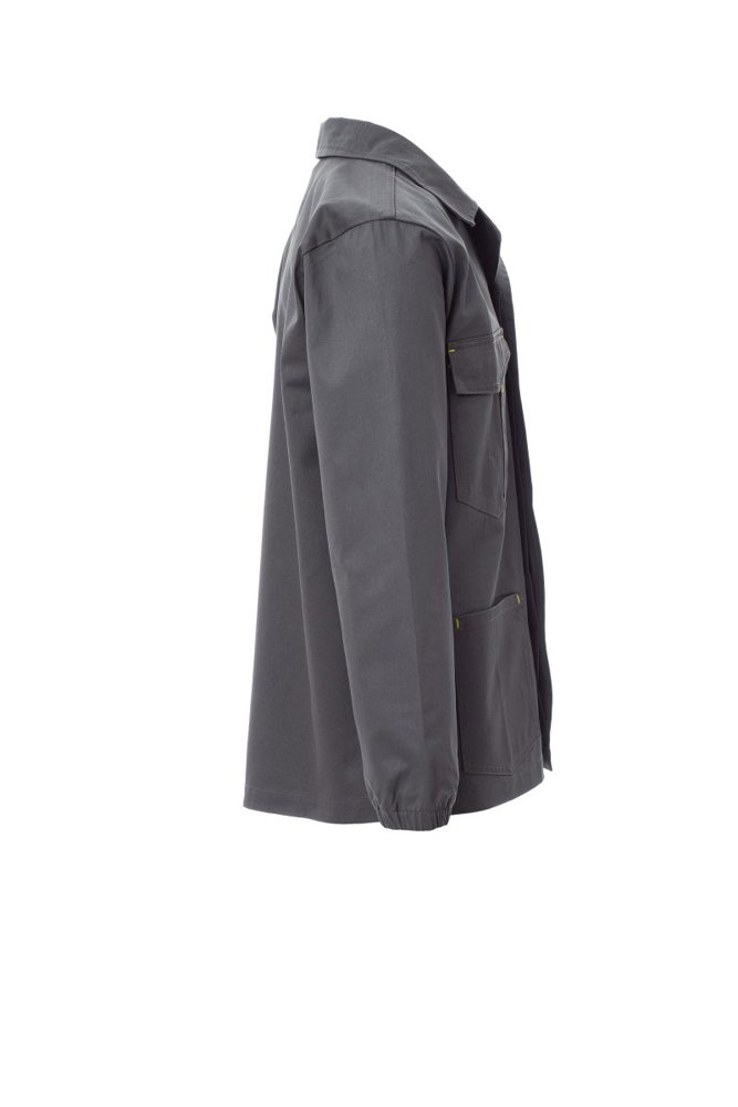 Jas met open hals, elastiek aan de polsen, afgedekte sluiting met knopen, twee opgestikte zakken en een borstzak met ruimte voor smartphone, badgehouder, sleuf voor pen en sluiting met overslag en klittenband.