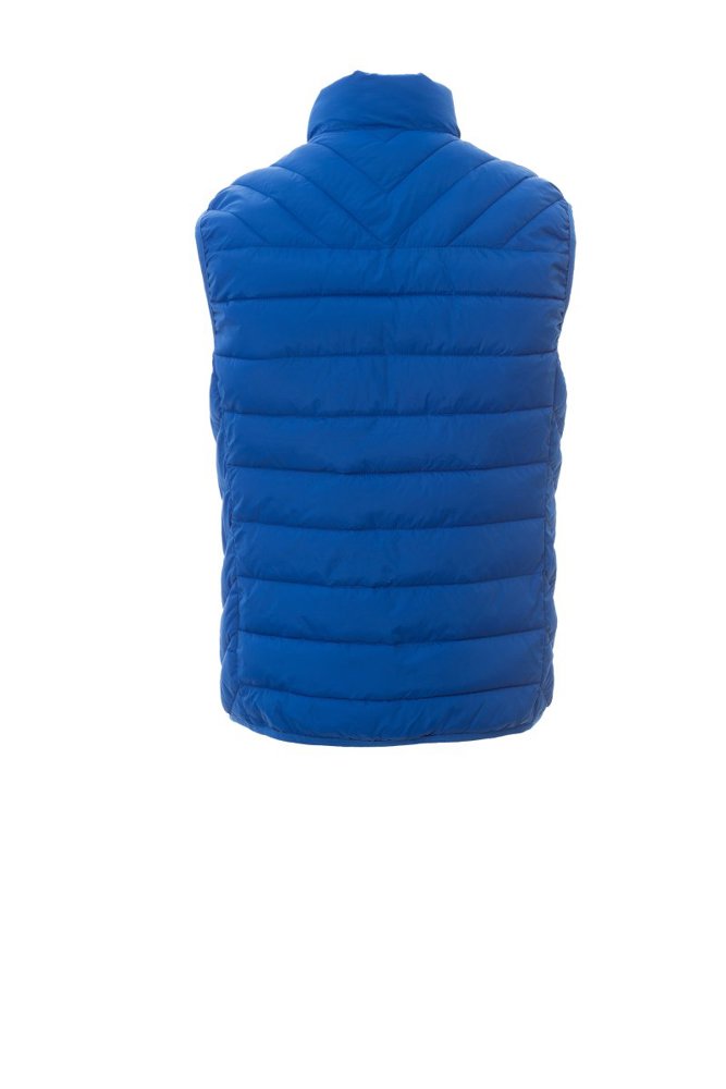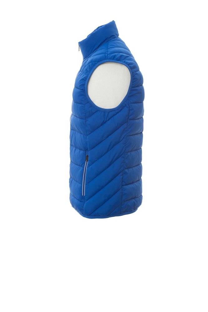 Gilet/gevoerde herenjack, plastic rits 5mm met metalen treklipje, dunne bies ter hoogte van de lendenen, twee zakken aan de buitenkant. Binnenkant: polyester voering met donseffect, twee zakken.