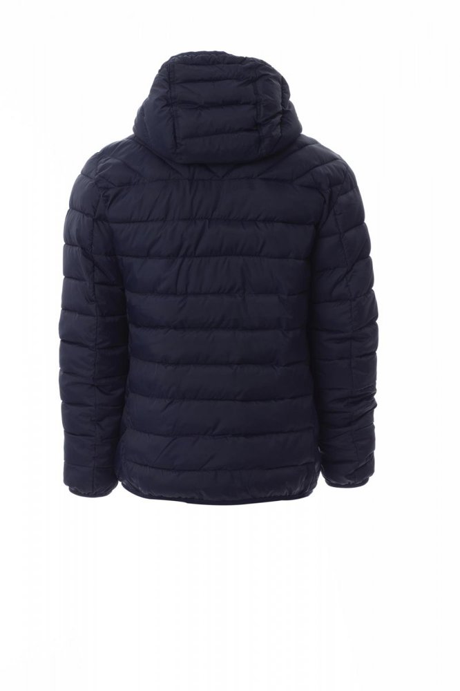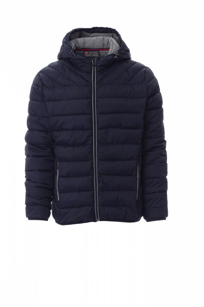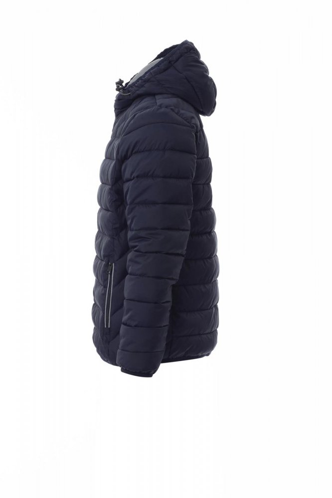 Herendonsjack met capuchon, kunststof rits van 5 mm met metalen runner, dunne bies bij de polsen en aan de taille, twee buitenzakken. Binnenzijde: polyester voering met donseffect, twee zakken.