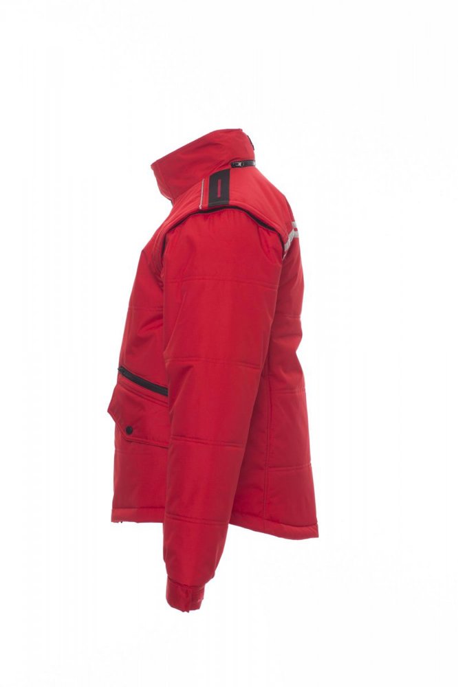 Herenjas, afneembare mouwen, kunststof rits van 8 mm met metalen runner met overslag en kunststof knopen, gevormde rug, uitvouwbare capuchon, twee buitenzakken met LOCK SYSTEM en twee met rits, schuine zakken voor gemakkelijker toegang, een borstzak voor smartphone en ring voor badgehouder, reflecterende banden op de zak en de rug. Binnenzijde: gewatteerd, contrasterende voering van fleece bij de rug en kraag, een binnenzak, rits aan binnenzijde om bedrukken en borduren te vereenvoudigen.