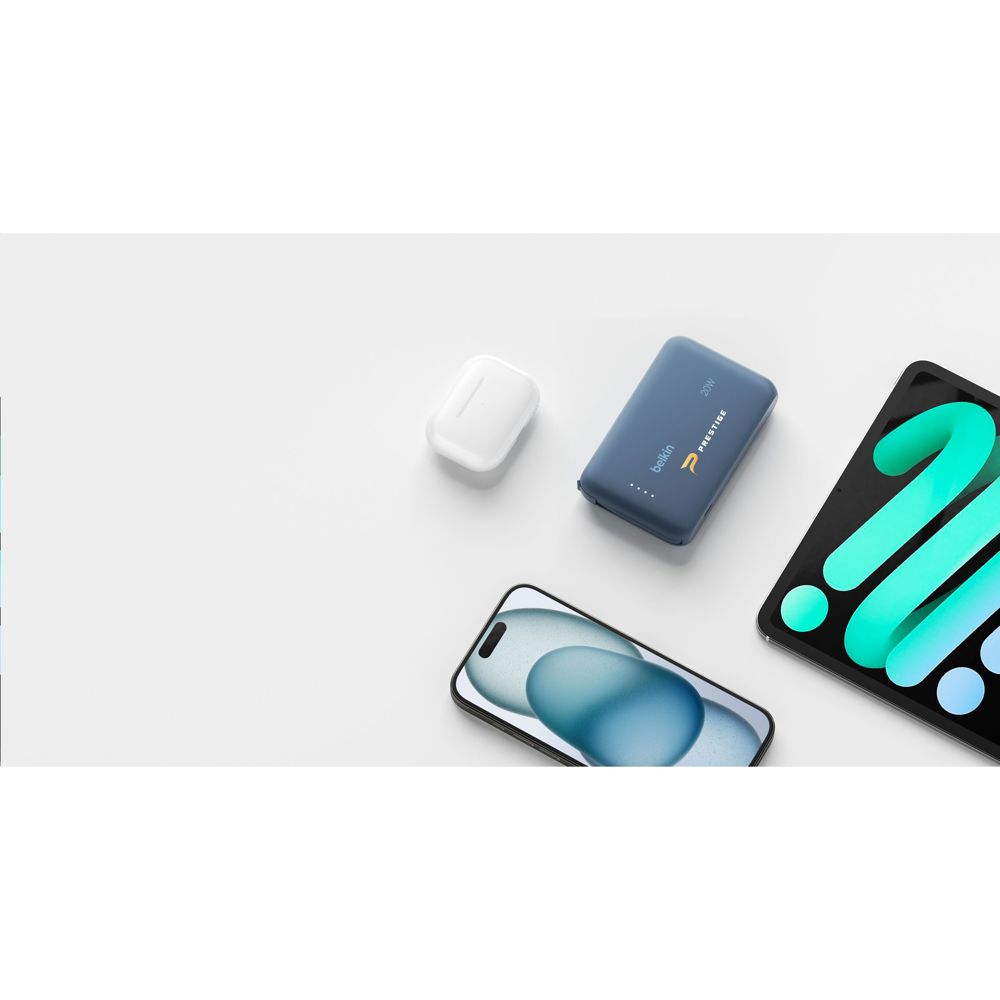 Powerbank 10.000 mAh met geïntegreerde kabel, van het merk Belkin. De behuizing (exclusief de kabel) is gemaakt van 72% gerecyclede materialen. Met passthrough-opladen: apparaten opladen terwijl de powerbank zelf wordt opgeladen. Laad snel twee apparaten tegelijk op met maximaal 20W vermogen via de geïntegreerde USB-C-kabel en de extra poort. Deze powerbank biedt tot 43 uur extra batterijduur in een compacte en lichtgewicht behuizing. Met LED-indicatielampje. 100% plasticvrije verpakking. Gemaakt van plastic dat na gebruik is gerecycled. Inclusief gebruiksaanwijzing. Per stuk verpakt.