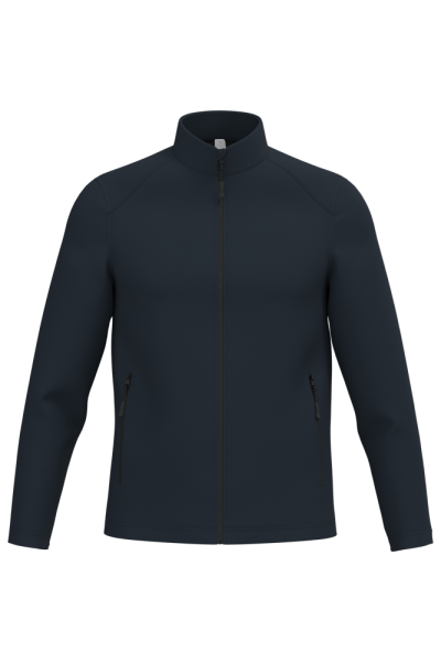 95% polyester / 5% elastaan. Softshell 2 lagen met waterafstotende behandeling. Binnenkant: zwarte microfleece van 100% polyester. Rechte snit. Opstaande kraag. Twee zijzakken met polytricot voering, nylonritsen en zwarte ritstrekkers. Ritssluiting in zwart nylon met kinbescherming en ritstrekker. Schouder- en rugstukken met sierstiksels. Zwarte nektape aan de binnenzijde. Mouwboorden en zoom afgwerkt met dubbele stiksels. Afneembaar merklabel.