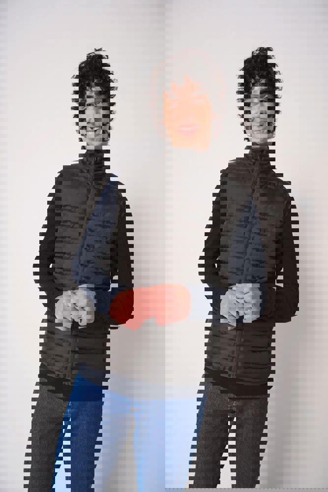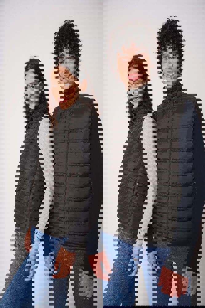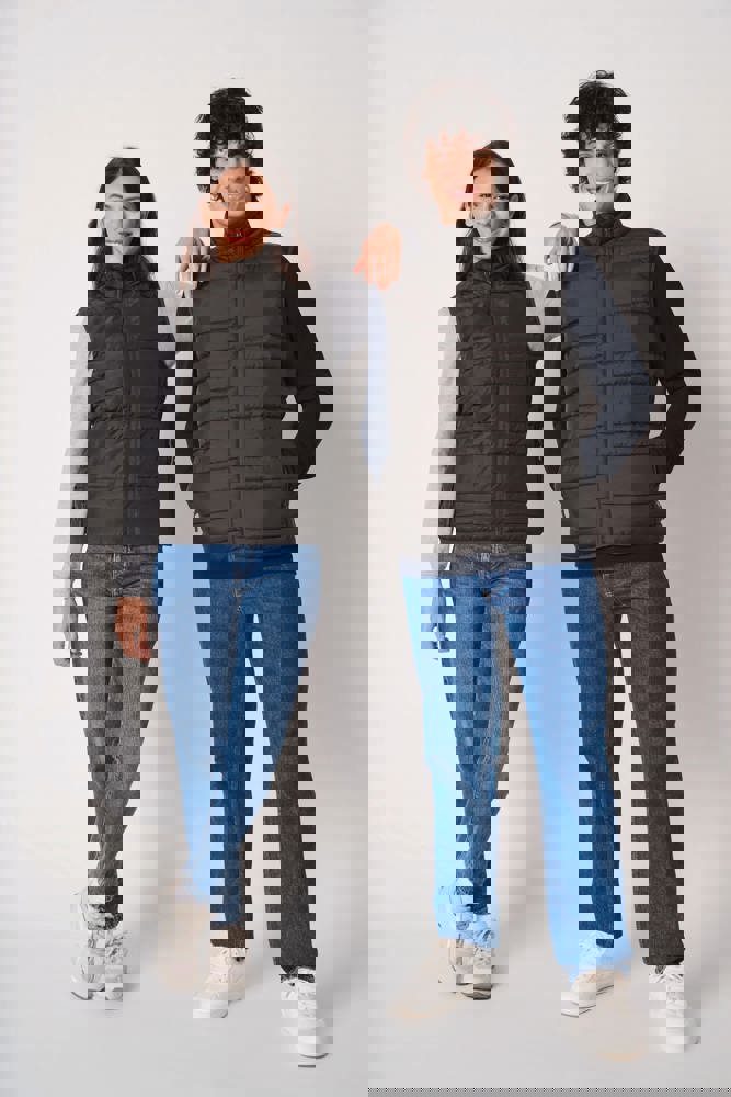 100% polyester 290T. Vulling: 100% polyester. Voering: 100% polyester 290T in toon-op-toon kleur. Rechte snit. Opstaande kraag. Twee zijzakken met voering in 290T, nylonritsen en toon-op-toon ritstrekkers. Twee binnenzakken. Ritssluiting in toon-op-toon nylon met kinbescherming en ritstrekker. Horizontale gewatteerde naden. Extra brede banen van 11 cm aan de voorkant en 14,5 cm aan de achterkant bevorderen personalisatie. Afwerking met elastische biais aan de armsgaten en onderkant in toon-op-toon kleur. Ophanglus binnenin de kraag. Opvouwbaar in zijn eigen zak. Afneembaar merklabel. Geïnjecteerde vulling: het gramgewicht kan variëren naargelang de zones van het kledingstuk. Het totaalgewicht is indicatief.