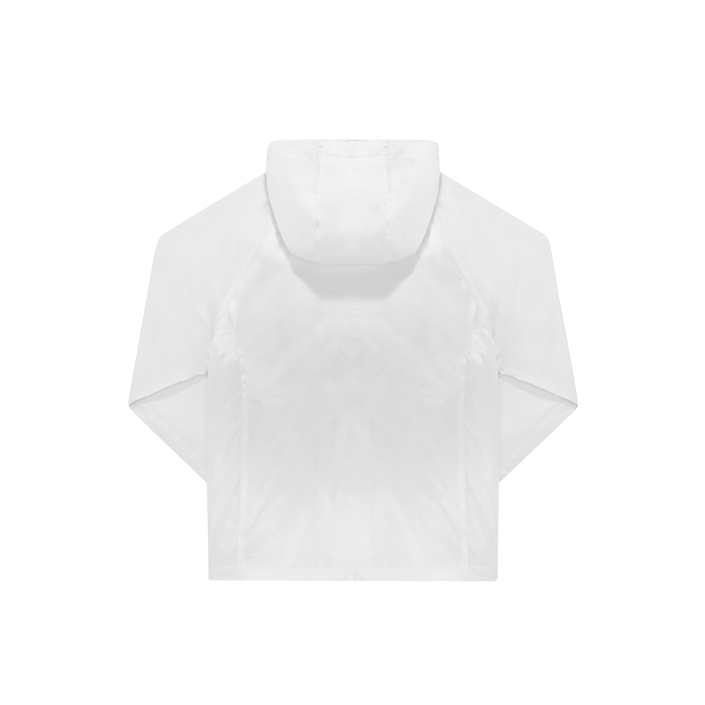 100% gerecycled polyester. Waterafstotend dankzij de DWR-coating (Durable Water Repellent). Raglanmouwen, verstelbare stormcapuchon en semi-elastische boorden. 2 voorzakken met rits.
