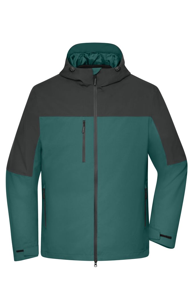Buitenjas met membraan is wind- en waterdicht (10.000 mm waterkolom), ademend en waterdampdoorlatend (5.000 g/m²/24 uur)