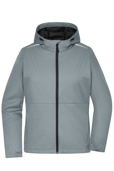Lichte en aangenaam zachte softshellkwaliteit met TPU-membraan Wind- en waterdicht (5.000 mm waterkolom) Ademend en waterdampdoorlatend (1.000 g/m²/24 uur) Aangepaste en verstelbare capuchon Gevoerde ritssluiting met kinbescherming 2 zijzakken met ritssluiting Alle ritssluitingen zijn in contrasterende kleur Breedteverstelling aan de zoom door middel van elastisch koord met stopper Reflecterende print op de achterkant boven de zoomnaad en op de voorste schoudernaad aan de voorkant (geen PBM) JN1393: licht getailleerd 1/2 bovenwijdte: 47 cm 1/2 taillewijdte: 43 cm 1/2 zoomwijdte: 47 cm Lengte voorpand vanaf schouder: 60 cm Lengte rugpand vanaf schouder: 63 cm Mouwlengte: 62 cm OEKO-TEX® Standard 100 (25.HDE.51239) Softshell GRS Standard Ademend-Waterdoorlatend Waterkolom 1.500mm Waterkolom 2.000mm Waterkolom 3.000mm Waterkolom 5.000 mm Capuchon