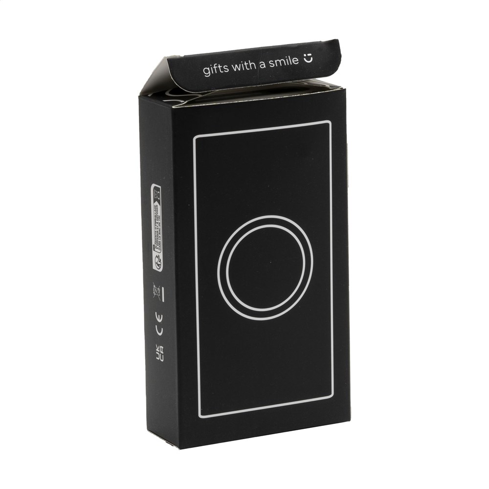 Uiterst complete wireless charging powerbank met ingebouwde Li-ion batterij (8.000 mAh). De behuizing is gemaakt van 100% RCS-gecertificeerd gerecycled ABS. Voorzien van reguliere output, type-c input en 5W draadloze oplaadtechnologie. Draadloos opladen van mobiele apparaten die QI draadloos laden ondersteunen (nieuwste generatie Android en iPhones vanaf 8 en hoger). Input: DC5V/2.1A. Output USB: DC5V/2.1A. Wireless output: DC5V/1A. Met indicatielampjes en aan/uit knop. Inclusief micro-USB oplaadkabel en gebruiksaanwijzing. RCS-gecertificeerd. Totaal gerecycled materiaal: 25%. Per stuk verpakt.
