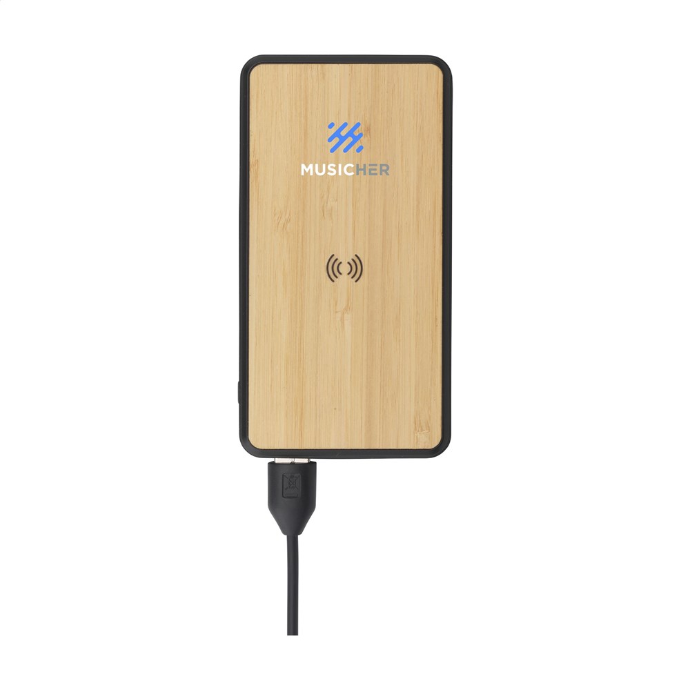 Powerbank met het gemak van draadloos opladen. De behuizing van deze ideale combinatie is gemaakt van gerecycled ABS met een toplaag van bamboe. Met ingebouwde Li-ion-polymeerbatterij (10.000 mAh). Voorzien van 2 USB-A-poorten en USB-C-aansluiting. Input: Type-C-DC5V/2.0A. Output: Dual USB-A-DC5V/2.1A. Wireless Output: 5W. Compatibel met alle mobiele apparaten die QI draadloos laden ondersteunen. Met indicatielampjes en aan-/uitknop. Inclusief USB-C oplaadkabel en gebruiksaanwijzing. RCS-gecertificeerd. Totaal gerecycled materiaal: 10%. Per stuk verpakt.