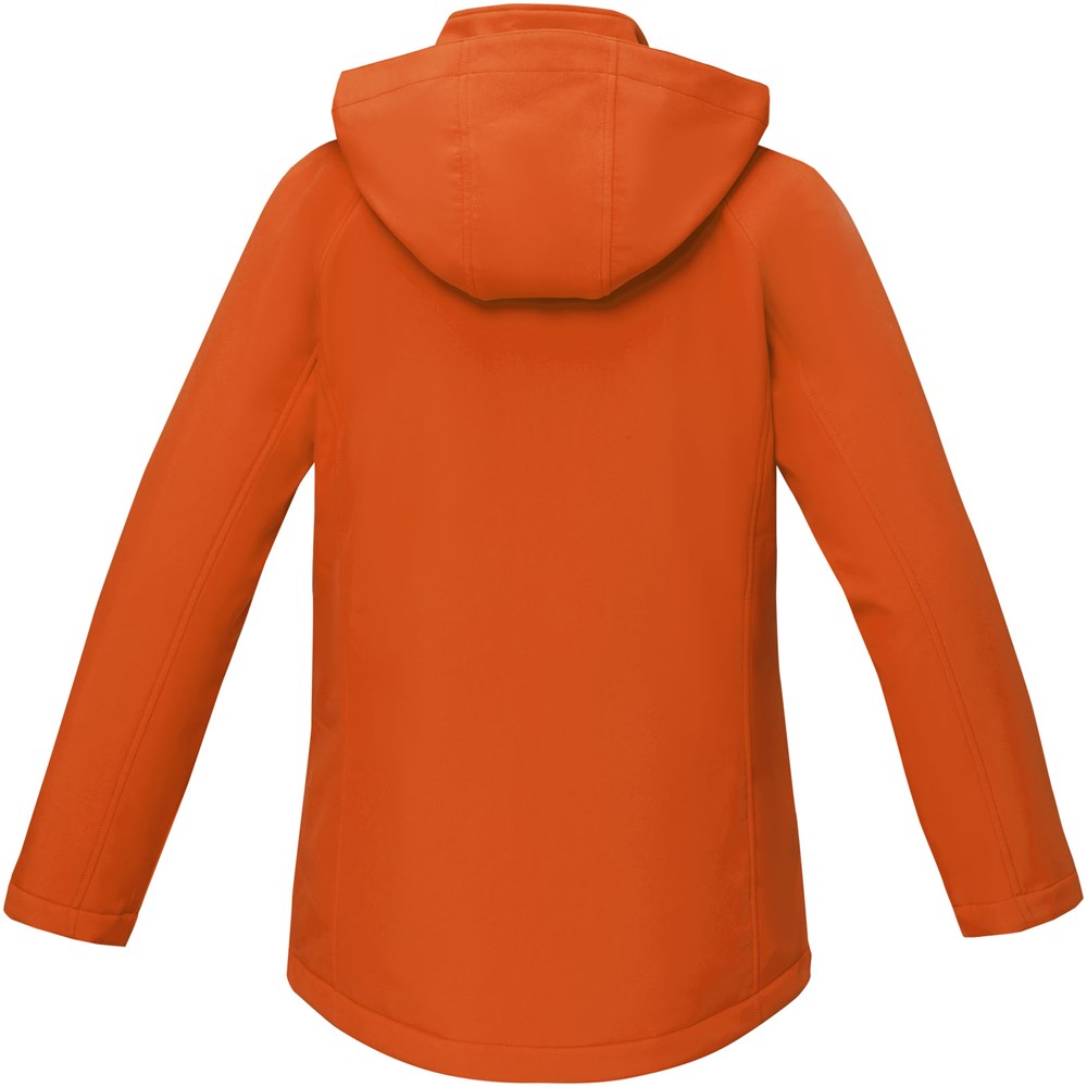 De Notus dames gewatteerde softshell jas - een perfecte mix van stijl, functionaliteit en comfort. Dit jack met moderne look heeft een afneembare capuchon met drukknopen, zodat je je look moeiteloos kunt aanpassen. Het afscheurbare hoofdlabel zorgt voor tagless comfort tegen je huid. De elementen trotseren is een fluitje van een cent met de contrasterende omgekeerde ritssluiting middenvoor en de binnenste stormflap met kinbeschermer. Benodigdheden zitten veilig opgeborgen in de voorzakken met ritsen en een handige mouwzak met rits. Als je meer opbergruimte nodig hebt, is er ook een binnenzak van gaas. Gemaakt van 250 g/m² polyester mechanische stretch met een polyester taffeta voering, die niet alleen zorgt voor optimale vulling, maar ook een opvallend patroon heeft. Met het Notus gewatteerde softshell jack hoef je niet in te leveren op stijl of prestaties. Dit jack is ontworpen met een getailleerde vorm voor een vrouwelijke look.