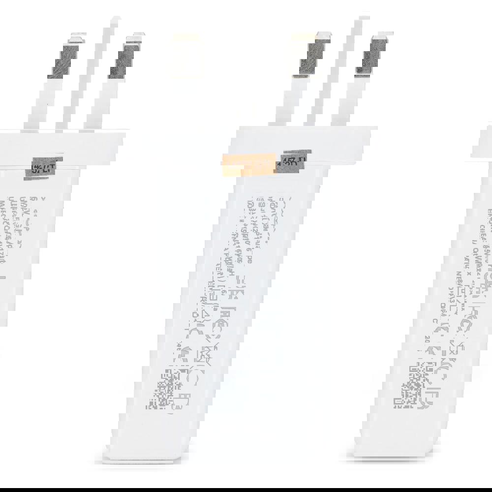 Deze compacte 65W GaN-stroomadapter laadt laptops, tablets en smartphones op. Met een slim oplaadlampje dat uitgaat wanneer volledig opgeladen. De adapter heeft USB-A (max. 18W) en Type-C (max. 65W) poorten en levert efficiënt vermogen, zelfs bij gelijktijdig gebruik (9W per poort). Gemaakt van brandwerend gerecycled plastic.