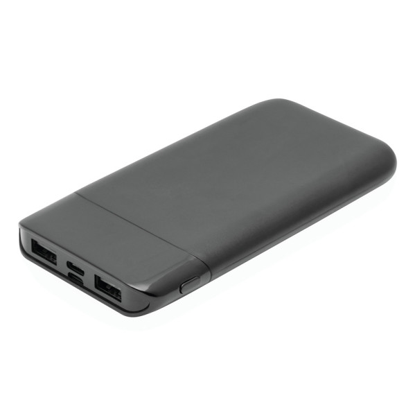 Powerbank BIG CAP, de perfecte energiereserve voor onderweg, geschikt voor Smartphones en USB-apparaten, incl. USB-oplaadkabel met Micro-USB stekker (lengte ca. 30 cm.) Aansluiting voor USB type C en Micro USB, aan/uitschakelaar, Input power 5V/2A, Output power 5V/2A, capaciteit 8.000 mAh, met laadindicatie in procenten.