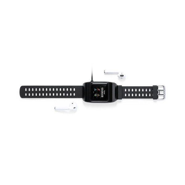 Multigadget smartwatch met oortelefoon geïntegreerd in de behuizing. Met Bluetooth®-verbinding en casual ontwerp, TPU-bandje en 1,30-inch TFT-aanraakscherm, waardoor het de perfecte gadget is voor allerlei soorten sport, vrije tijd en dagelijkse activiteiten.Spatwaterbestendig, met APP beschikbaar voor iOS en Android. Oplaadbaar via USB (kabel inbegrepen) en gepresenteerd in een aantrekkelijke ontwerpdoos. Gebruiksaanwijzing beschikbaar in het Engels en Spaans.