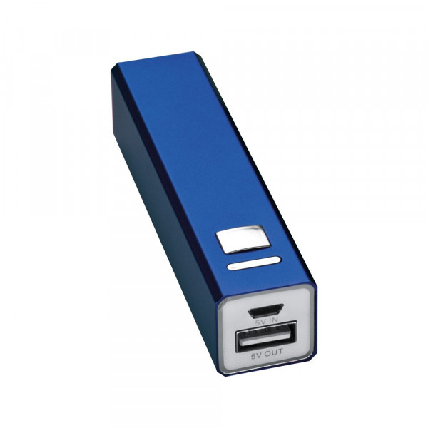 Powerbank van metaal. Zo kunt u uw GSM en tablet onderweg opladen. De Powerbank is een accu met USB-oplaadkabel en levert 2200MAh. Uw reclame brengen wij middels lasergravure aan