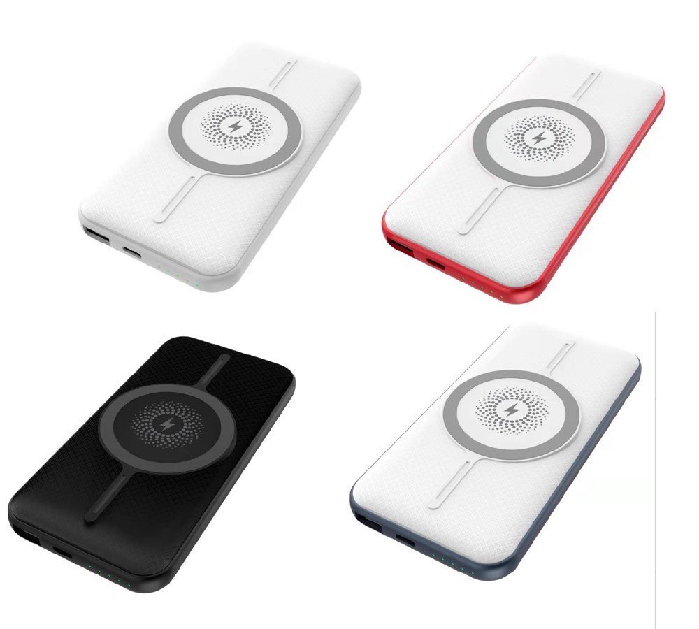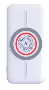 Draadloze oplader en powerbank met geïntegreerde magneten voor veilige hechting aan de smartphone. Kleuren: zwart, wit. Capaciteit: 10.000 mAh. Uitgang: 5V / 2A, draadloze uitgang: 5 W, geïntegreerd magnetisch oppervlak. Inclusief 1c print in één positie. Verpakking: witte vouwdoos.