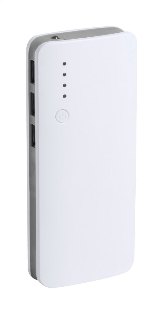 Kunststof USB powerbank met 3 oplaadpoorten en 10000 mAh batterij. Zonder oplaadkabel.