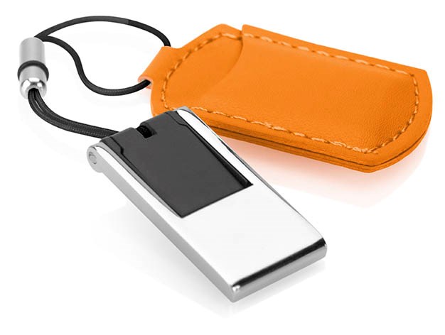 Mini metalen USB stick met PU-leren hoesje. Beschikbaar in 4 trendy kleuren.